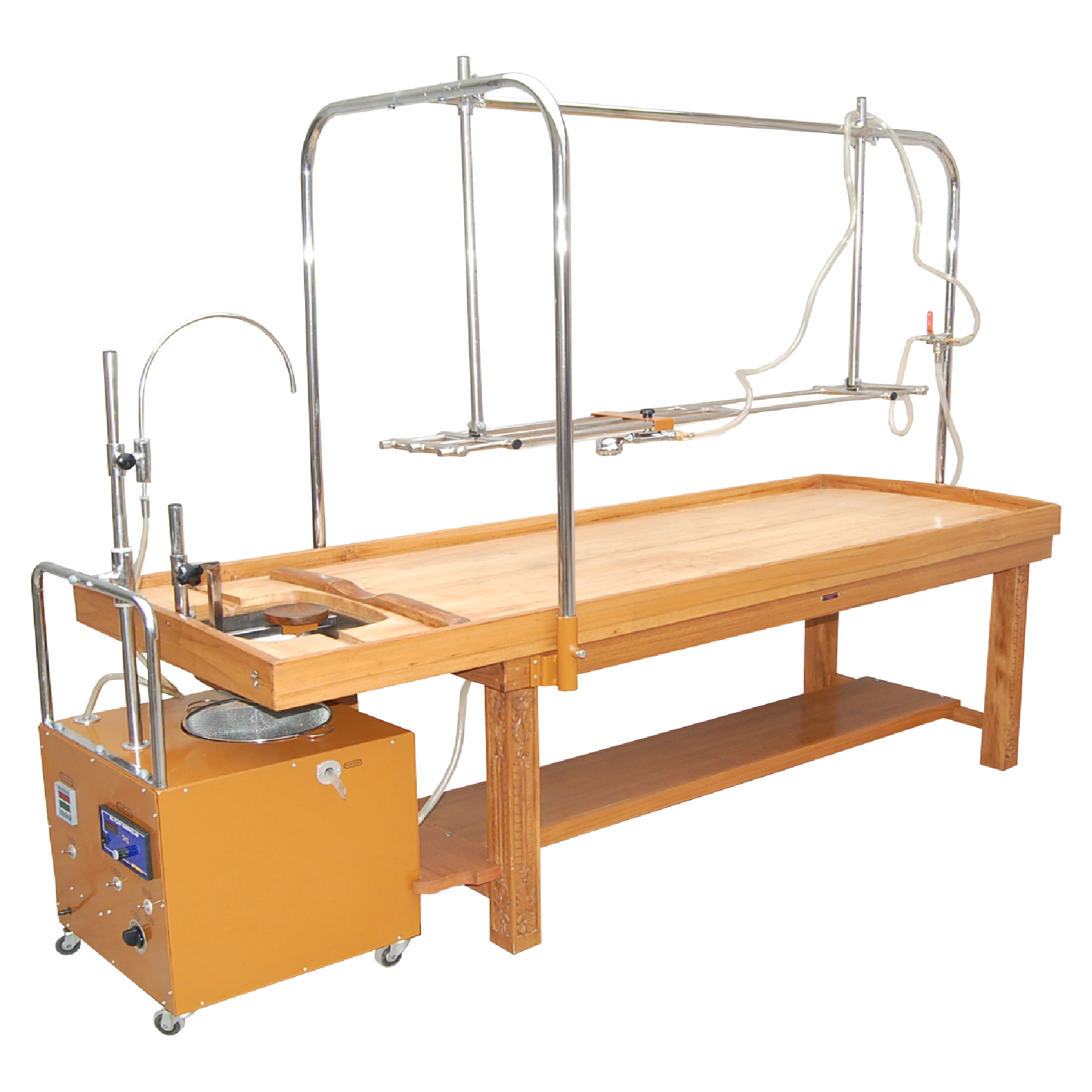 Specifically designed, deluxe model Pizhichil, yantra provides Full body oil bath, Shirodhara oil bath and Hand-shower oil bath with individual electrical & Valve controls.